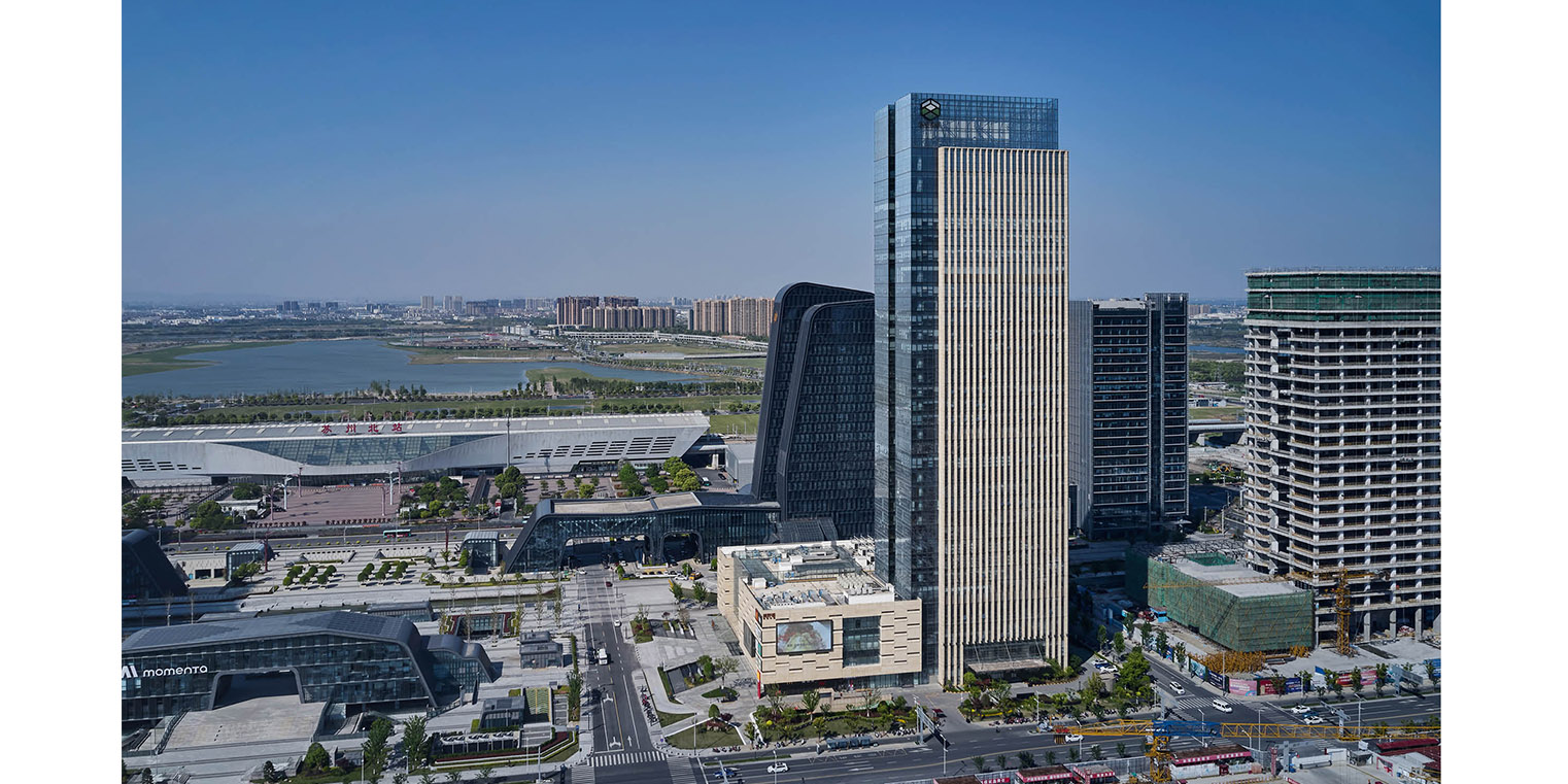 本案设计以高铁新城整体规划为依据,力求满足城市设计对该地块的要求。区域内高层林立,基地北侧的山水楼已开工,其蜿蜒、生动的建筑形态成为核心区城市形象重要的标识之一。我们选择了另一种协调的表达方式——对比,通过硬朗与挺拔的竖向线条与北侧建筑的柔软与延展的曲线对比,相互烘托陪衬,以突出各自的特点。并且通过两栋建筑塔楼间体块咬合交错的共性达成和谐一致。不仅使建筑表现出自己的个性,也为今后核心区城市空间形态的整体性奠定良好的基础。 本案放弃了一味求高的塔楼设计思路,在符合总体空间规划要求的基础上,理性的将建筑高度控制在160米左右,这样既可以保证塔楼标准层在使用上经济合理,又能与周边建筑群和谐共存,共筑核心区丰富的天际轮廓线。